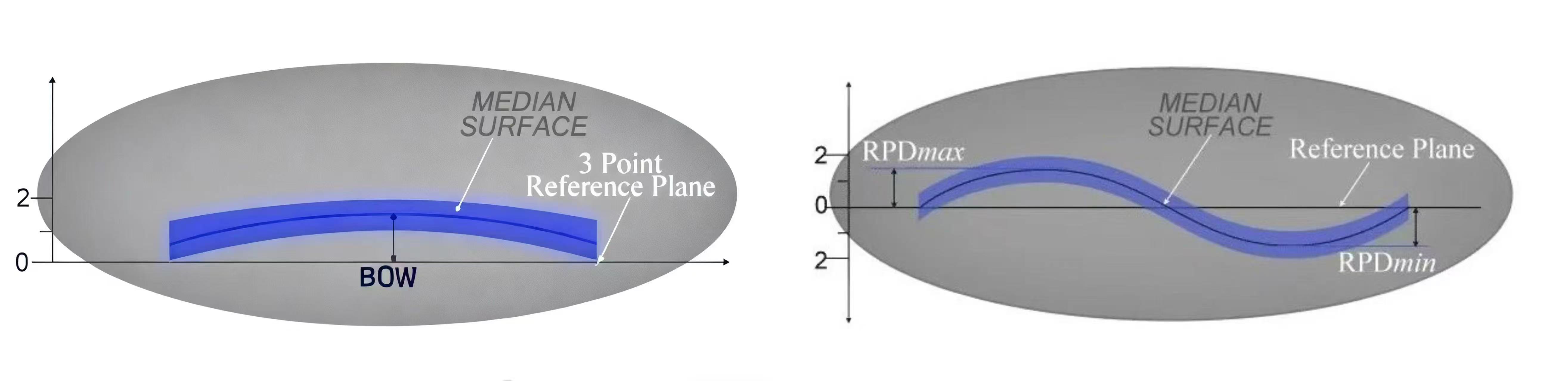 Indikátor přídě se zaměřuje na vertikální posun středové oblasti plátku, který pouze odráží místní stav ohybu. Je vhodný pro hodnocení scénářů, které jsou citlivé na místní rovinnost. Indikátor deformace je užitečný pro posouzení celkové rovinnosti a zkreslení, protože zohledňuje odchylku celého povrchu plátku a poskytuje informace o celkové rovinnosti celého plátku.