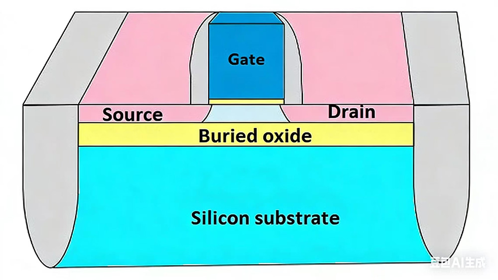 Přítomnost izolační vrstvy Si02 účinně izoluje tranzistor od podkladového křemíkového substrátu. Tato izolace snižuje nežádoucí proud z aktivní vrstvy do substrátu. Svodový proud se zvyšuje s teplotou, čímž se výrazně zlepšuje spolehlivost čipu v prostředí s vysokou teplotou.