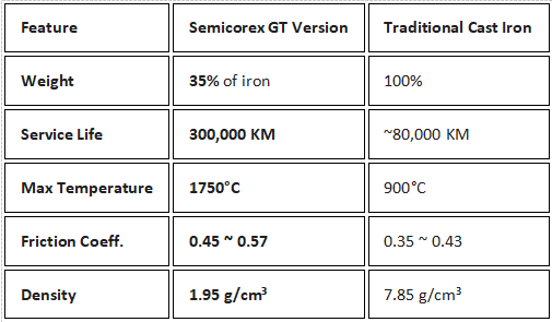 Verze Semicorex GT se vyrábí pomocí třetí generace výrobního procesu LCCM (Long Carbon Fibre Ceramic Matrix). Na rozdíl od standardních rotorů tyto systémy využívají jako primární surovinu vysoce kvalitní uhlíková vlákna T700-6000 pocházející z Japonska nebo Spojených států.