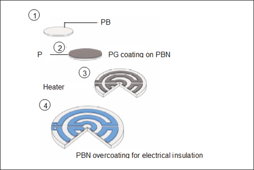 Pyrolytický boronový nitrid-pyrolytický grafit (PBN-PG) kompozitní ohřívač je topení, který používá jako substrát s vysokou izolací PBN a používá nízkotlaký tepelný rozklad chemické páry (CVD) při nízkém tlaku (pod 10Torr) a vysokou teplotu k natáčení vodivé PG. Hlavními složkami tohoto kompozitního topení jsou pyrolytický nitrid boru (PBN) a pyrolytický grafit (PG). Vzhledem k jeho vynikající odolnosti proti korozi a odolnosti proti vysoké teplotě se používá hlavně pro polovodičové zahřívání substrátu (používáno v MBE, MOCVD, povlak na rozprašování atd.); Vytápění supravodičového substrátu; Vytápění vzorku během analýzy vzorku; Vytápění vzorku elektronového mikroskopu; Kovové zahřívání; Zdroj vytápění kovového odpařování atd.