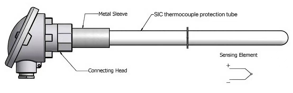 Jako ochranný kryt pro termočlánkové senzory,SICOchranná trubice termočlánku je obvykle umístěna vně snímače, aby obklopila prvek snímající teplotu. Mohou chránit termočlánek před vysokými teplotami, mechanickými nárazy a korozivními materiály. Ochranné trubice SIC termočlánku jsou tedy schopny snížit riziko poškození teplotního čidla a zaručit schopnost termočlánkového čidla spolehlivě a přesně měřit změny teploty.