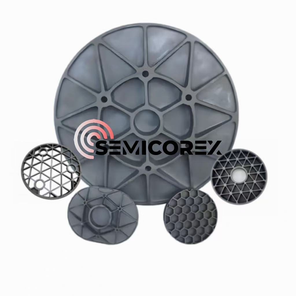 Pro zlepšení provozního pohodlí a snížení spotřeby energie zařízení používá Semicorex vysokou tuhostkarbid křemíkuk výrobě polotovarů zrcadel a začleňuje do polotovarů složité mřížkové struktury pro dosažení požadavků na nízkou hmotnost odrazných zrcadel z karbidu křemíku. Tato důmyslná kombinace výběru materiálu a konstrukčního řešení výrazně snižuje hmotnost odrazných zrcadel z karbidu křemíku při zachování jejich tuhosti. Výsledkem je, že odrazová zrcadla z karbidu křemíku zaujímají nezastupitelnou výhodnou pozici v oborech, jako je letecký a kosmický výzkum a průzkum hlubokého vesmíru.